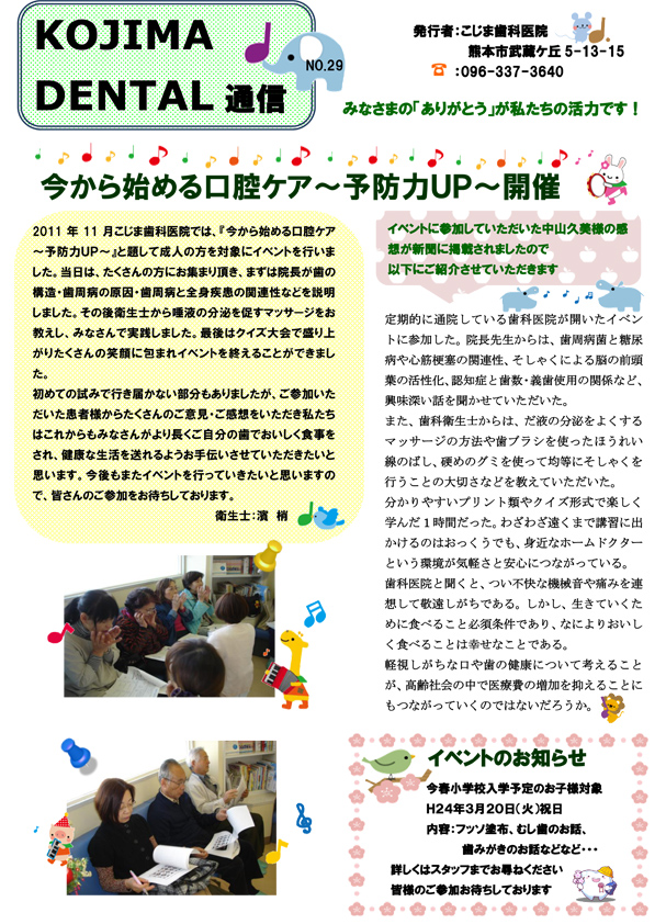 KOJIDEN通信は、こじま歯科医院スタッフが製作しています。歯科に役立つ内容だったり、料理レシピだったり、私たちスタッフが気になる情報も掲載しています。ぜひご覧ください。