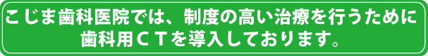 ですから、インプラントや歯周病などの診断に有効で、従来の平面画像では難しいとされた骨の幅の確認などが行えます。CT撮影で様々な角度から診断することで、正確な診査・診断に役立ち、より安全で確かな治療を行うことが可能となりました。