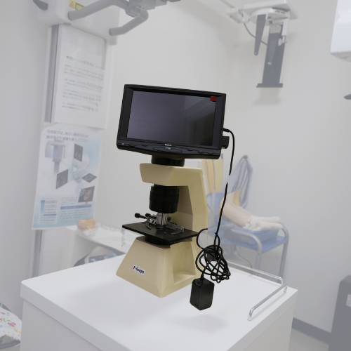 マイクロスコープは、最大数十倍に歯を拡大して直視しながら治療を行うことが可能な顕微鏡です。当院では治療中撮影したものを見ていただきながら治療後の説明をしています。