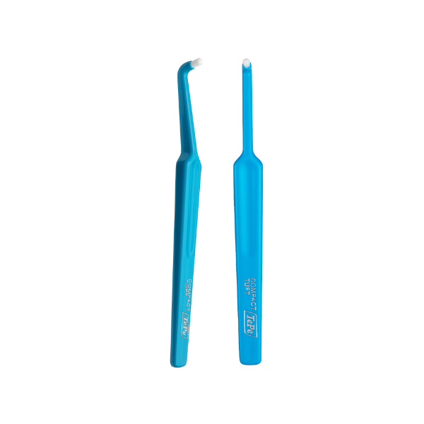 歯ブラシの届きにくい奥歯の後ろ側や歯並びの悪いところはタフトブラシの先を当て、丁寧にブラッシングを行います。