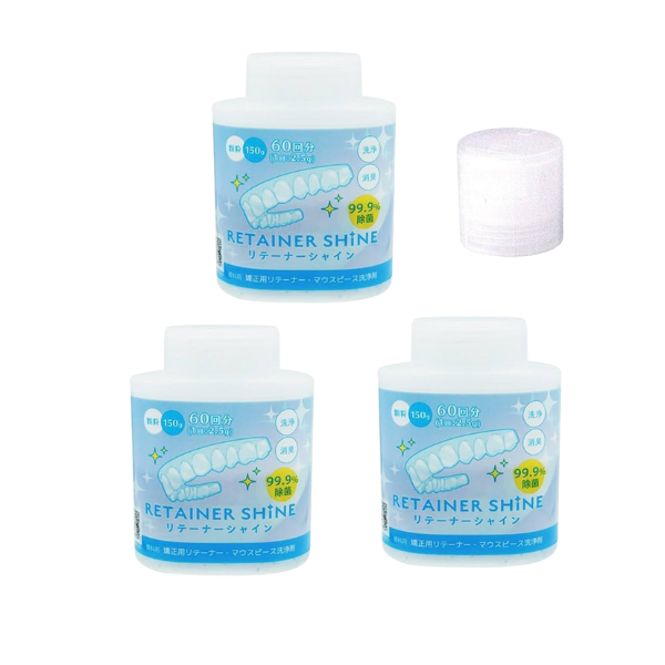 99.9%の強力除菌率と酵素の力で、リテーナーやマウスピースの汚れ・ニオイを5分で解消する中性洗浄剤です。108錠入りの大容量で毎日手軽に使えるミントの香りタイプです。