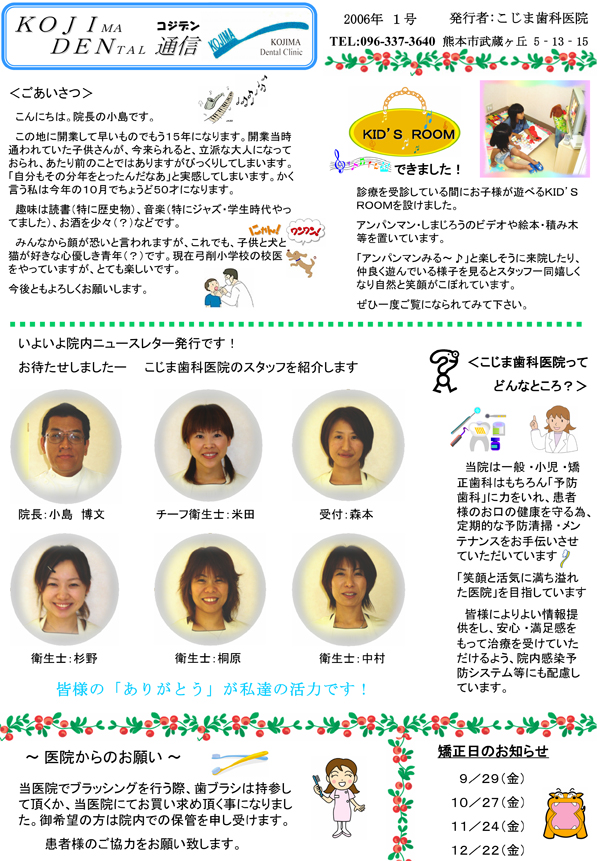 KOJIDEN通信は、こじま歯科医院スタッフが製作しています。歯科に役立つ内容だったり、料理レシピだったり、私たちスタッフが気になる情報も掲載しています。ぜひご覧ください。