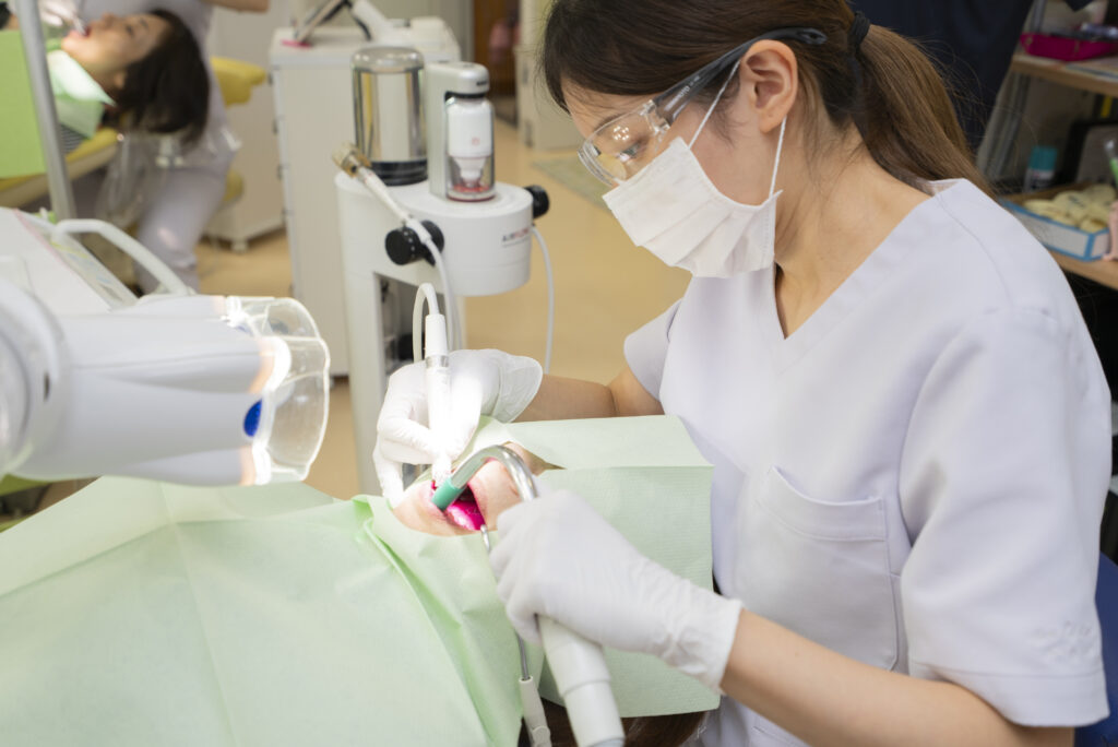 毎日の歯ブラシやフロス・歯間ブラシが届く範囲のケアは、患者様ご自身で自宅でのケアを合わせてお願いしています。もちろんご自宅でもできるように歯科衛生士がケアの仕方などアドバイスをさせていただきます。