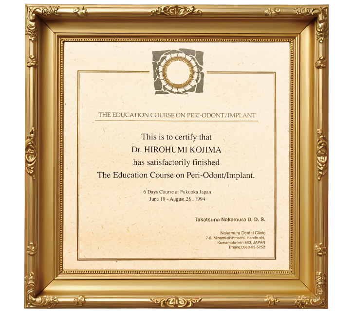 歯周病と「インプラント」を統合したコース修了書
