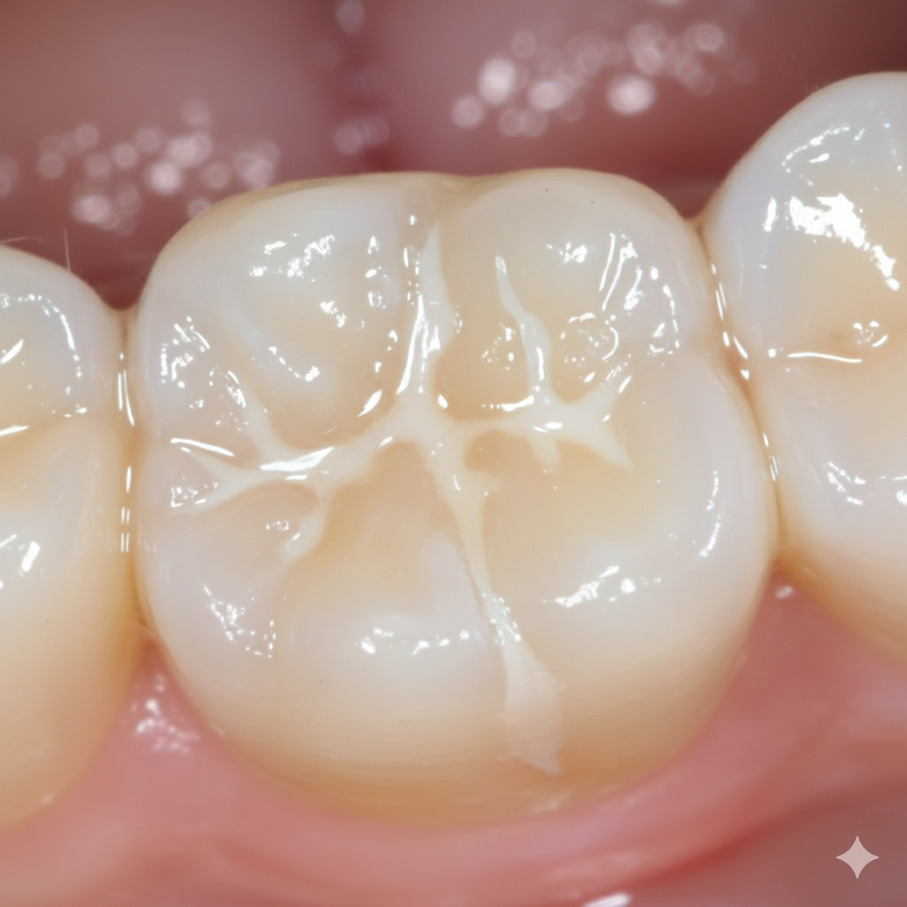 シーラントとは、むし歯になりやすい奥歯の溝を埋めて、むし歯菌を防ぐ材料です。歯を強くして、むし歯菌から守るフッ素が入っており、むし歯になりにくい歯をつくります。