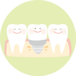インプラントは失ってしまった歯を、人工歯根(インプラント)を埋め込むことで、歯本来の機能や見た目を取り戻す治療法です。入れ歯やブリッジとは違い、他の健康な天然歯に悪影響を与えることなく、天然歯と変わらない機能を得ることができます。